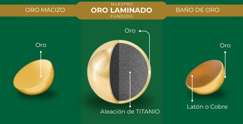 Forjamos un blindaje de Oro 18K sobre titanio para lograr el color, brillo y textura inconfundible de la alta joyería italiana.
